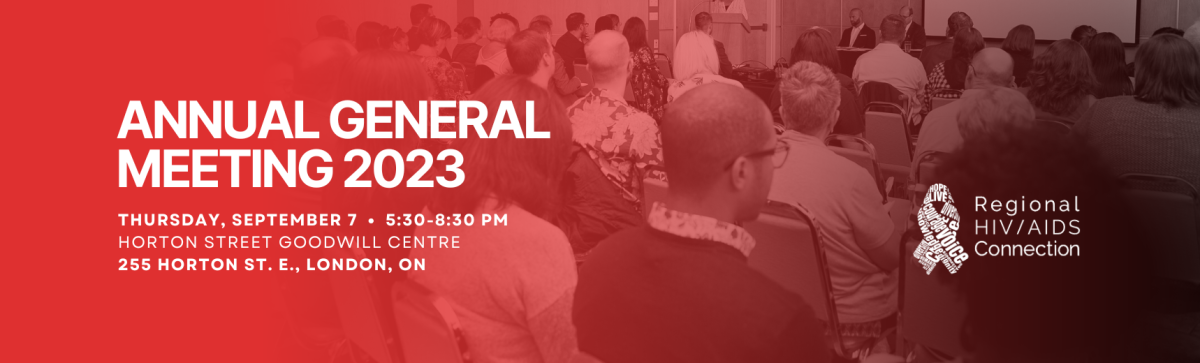 Please join us for Regional HIV/AIDS Connection's Annual General Meeting (AGM) on September 7 as we review our performance during the fiscal year, reflect on key impacts we have made in the community, and the election of new Board members.
