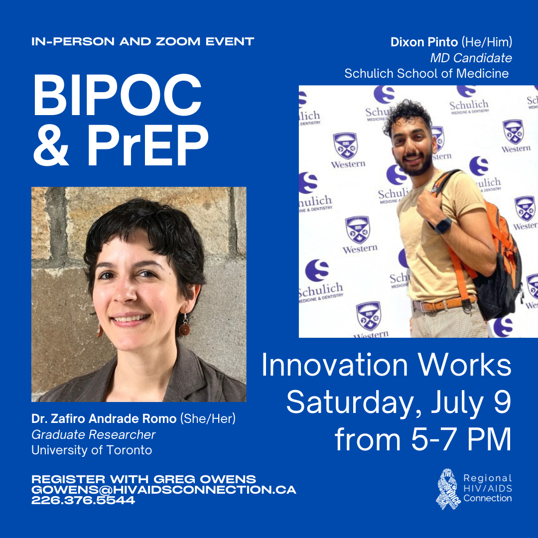 Heard about PrEP before but think it isn't for you? PrEP has a reputation for only being used by cis, gay white guys, but we want you to know this isn't true! Come join this interactive session with Dr. Zafiro Andrade Romo and MD Candidate Dixon Pinto to find out more about how PrEP could be a part of your sexual health routine, where you can access PrEP locally and answer questions you may have about HIV and STI prevention. Featuring appearances from local providers and community support workers.